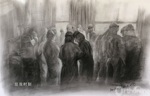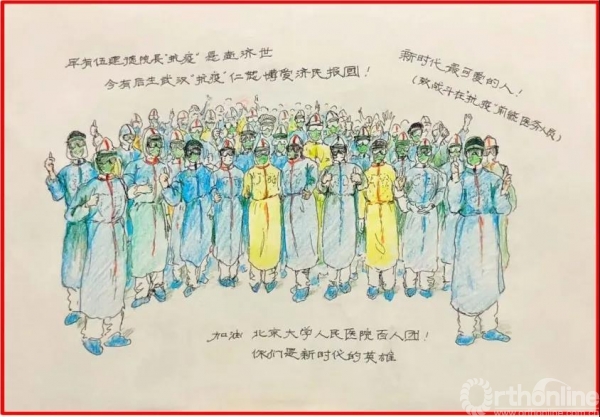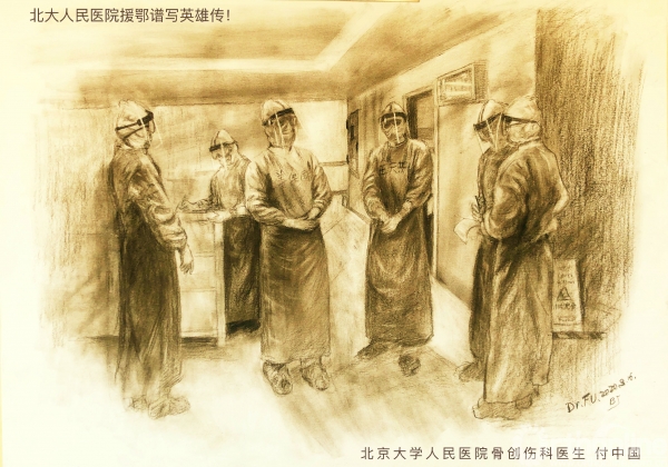 此次付中国教授通过画作致敬抗疫一线的医护人员,他表示,自新冠肺炎战疫打响以来,北京大学人民医院姜保国院长率领130余名医护工作者勇敢逆行,奔赴武汉最前线,英勇抗击新冠状肺炎病毒,他们不惧风险、不怕困难,救治了大量危重病人。