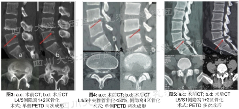 对于骨化位于5、6区时应该选择PETD,原因同L4/5节段。典型病例见图5。