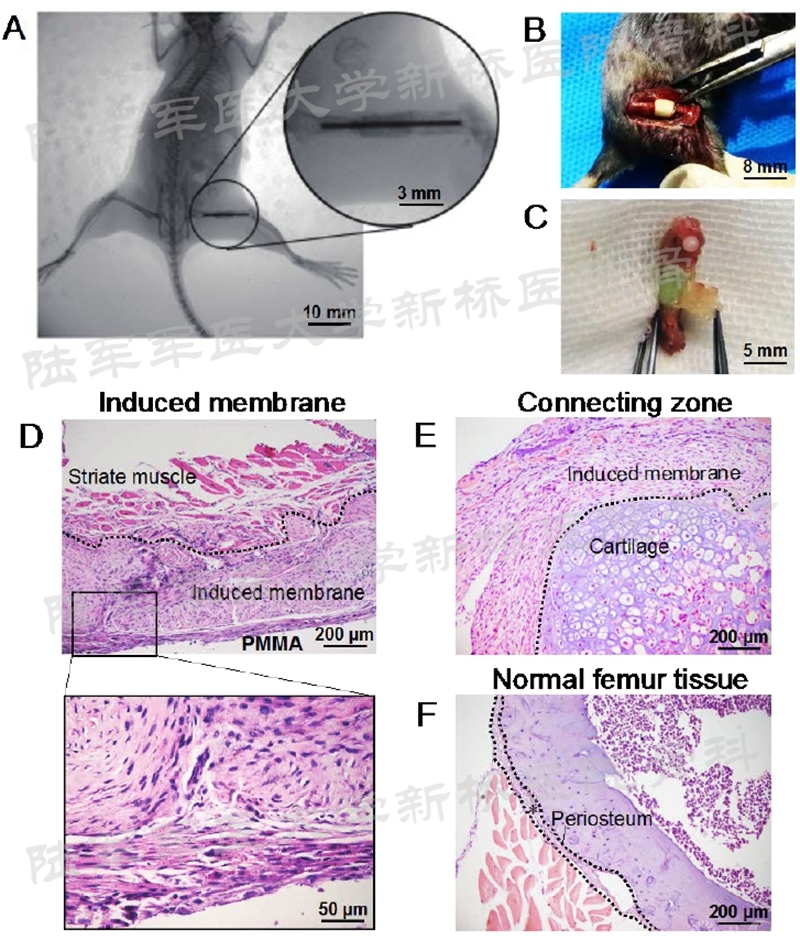图1 小鼠股骨诱导膜模型的构建与评估
