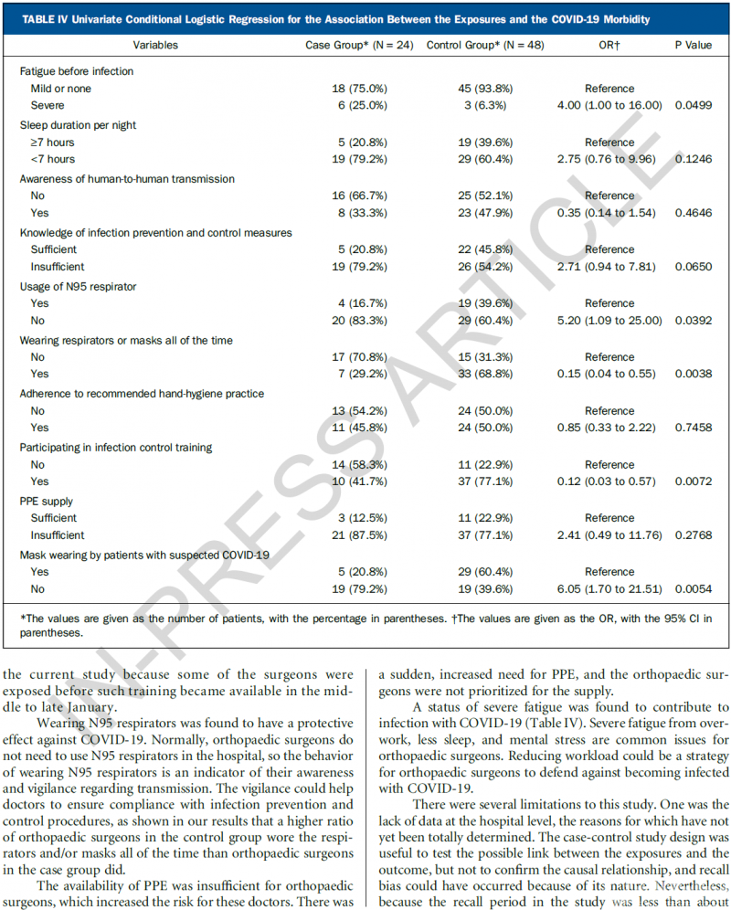 武汉协和吴永超团队在JBJS发表骨科医生感染新冠肺炎危险因素