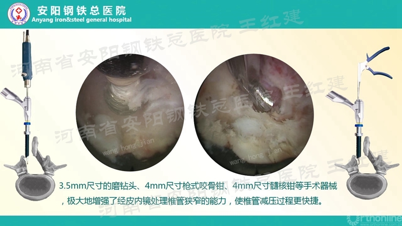 3、大通道内镜技术完成了“如何用内镜复制一台腰椎后路开放减压手术”是脊柱外科后路手术的内镜化、可视化,符合脊柱外科大夫的手术理念,能够实现脊柱外科的减压、复位、固定、融合;