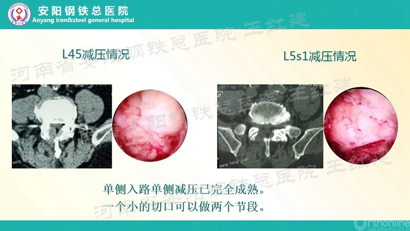 2、Endo-ULBD技术能够解决典型的腰椎管狭窄症,既达到减压效果,又不影响脊柱的稳定性。部分严重滑脱引起的腰椎管狭窄症亦可在Endo-ULBD的基础上进行Endo-P/TLIF;