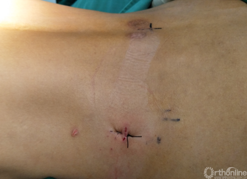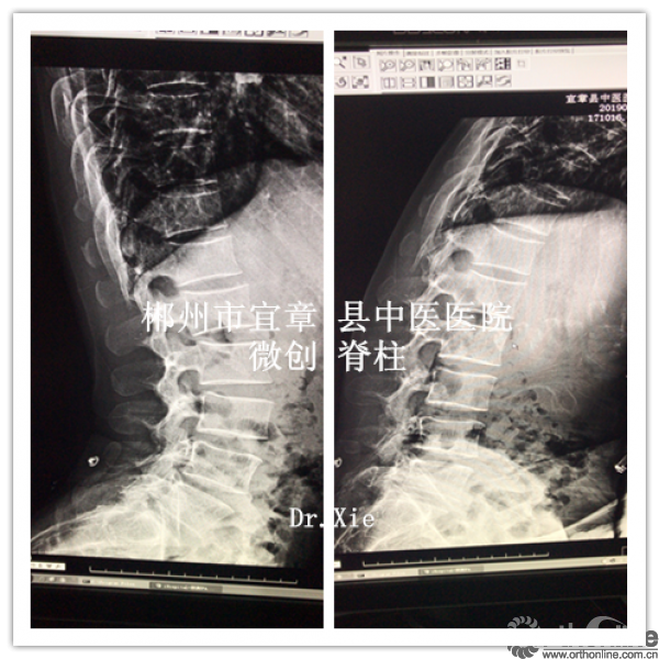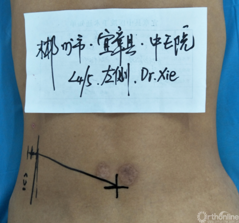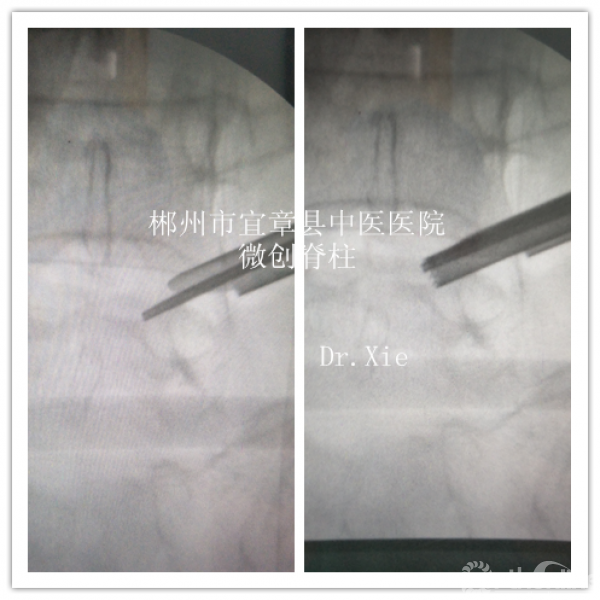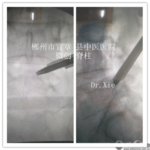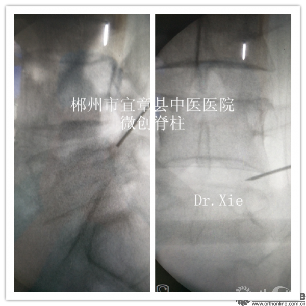 3、 通过使用C臂机透视正、侧位片,找准好穿刺点;