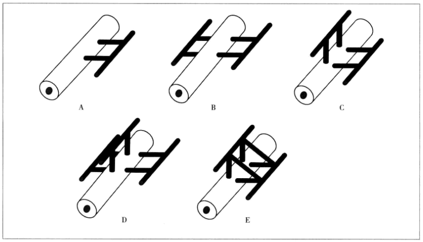 A.单平面单侧式;B.单平面双侧式;C.双平面单侧式;D.双平面双侧式;E.三角形