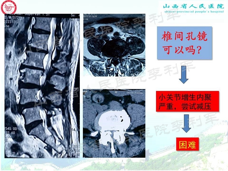 引起腰椎管狭窄因素主要包括骨性狭窄因素(关节突增生内聚椎体后缘增生骨赘及钙化椎间盘)和软性狭窄因素(黄韧带的增生肥厚及未钙化椎间盘退变突出)。所以我们推测疗效不好的原因可能是椎间孔镜手术主要对软性压迫的解除较好,但对于骨性压迫的处理非常有限。