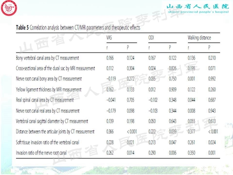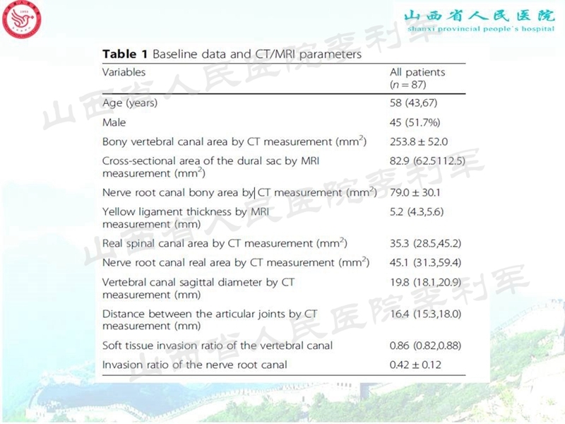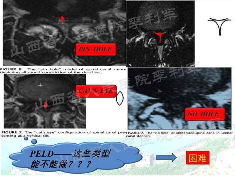 那么,需要我们思考的问题有很多:1、PELD治疗腰椎管狭窄症依然按照传统开放手术适应症是否扩大了椎间孔镜的适应症范围?如何掌握经皮内镜椎间孔入路治疗腰椎管狭窄症的手术适应症范围,是否骨性压迫为主的狭窄用孔镜技术治疗效果不佳?术前影像学的参数是否可以提供一些适应症选择的依据?2、PELD治疗腰椎管狭窄症的临床疗效具体和哪些因素有关?哪些参数和临床疗效相关性较强?