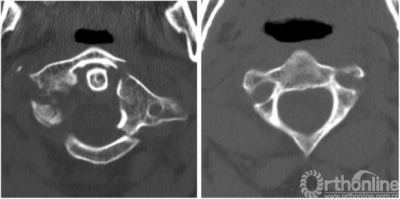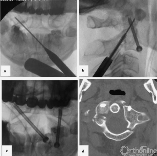 在两个病例中,对侧交叉螺钉固定均没有任何并发症,并提供了C1-C2节段良好的稳定。