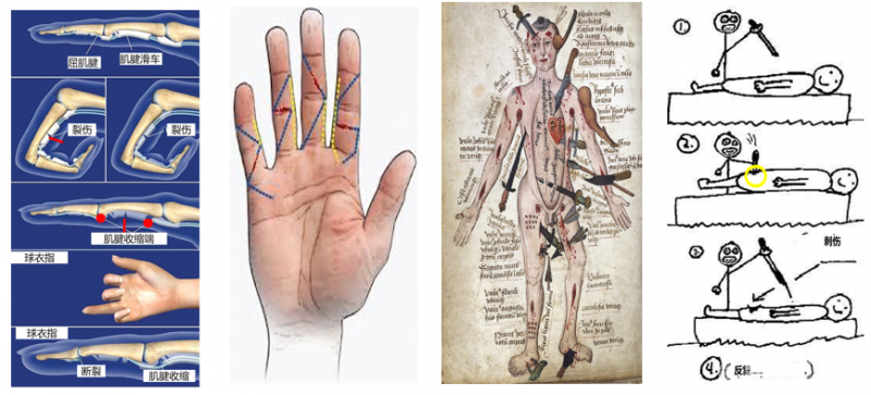 肌腱修复:利器切断、断端平整,无组织挫伤,可在清创后将肌腱缝合。