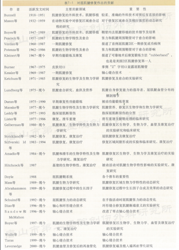 100年来人们对肌腱修复理念的变化(沃尔夫.格林手外科手术学[M].人民军医出版社,2012.