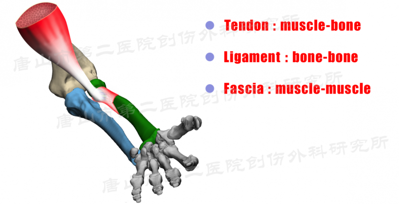 人体分为四大组织,我们的肌腱属于四大组织中的结缔组织,它对其他组织具有连接、支撑、保护、分隔、运输、防御、免疫等功能,肌腱具有的典型的连接(connective)功能。(Thomas W.Myers原.解剖列车[M].军事医学科学出版社,2015.