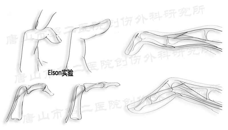伸指肌腱中央腱止点的展示、鹅颈畸形和纽扣畸形的展示