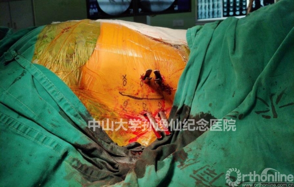 图5:侧卧位经皮椎弓根螺钉置入