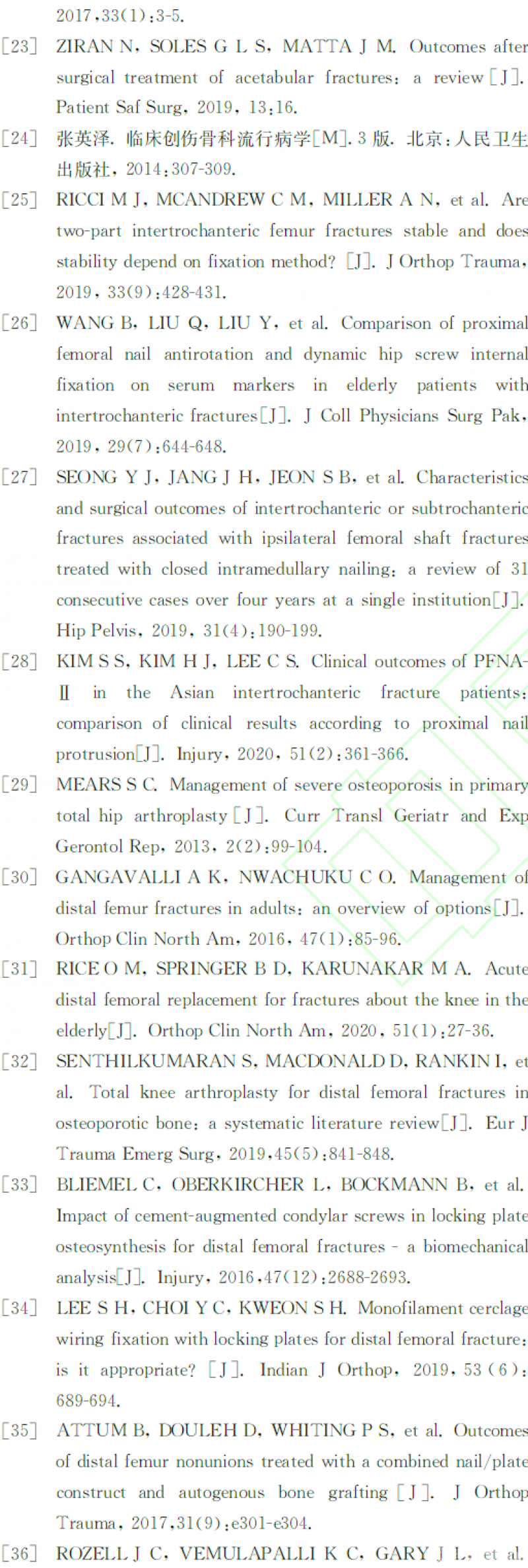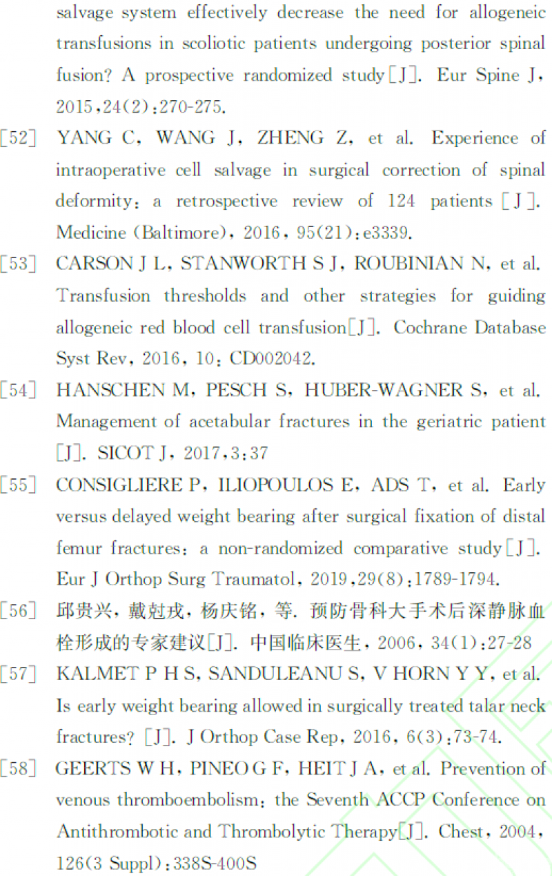 摘要:下肢关节周围骨质疏松性骨折好发于老年人,可带来运动功能丢失、骨缺损、内固定丢失等风险。区别于常规骨折的术后康复,下肢关节周围骨折要求良好的手术与康复治疗以恢复运动功能,而骨质疏松性骨折要求充分的医患沟通与个性化康复以规避内固定丢失风险。本共识着眼于下肢关节周围骨质疏松性骨折的特殊性,旨在平衡康复训练要求与安全性,促进下肢关节周围骨质疏松性骨折个性化诊疗与康复的推广普及。