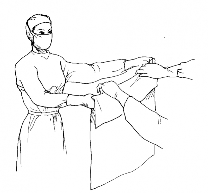 图2-3-9 洗手护士递给手术者无菌巾