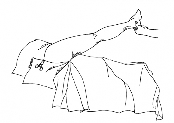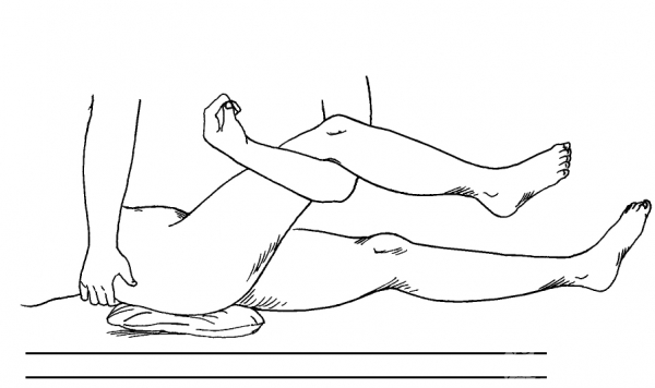 患者仰卧,由一巡回护士自膝部抬高下肢。皮肤灭菌后: