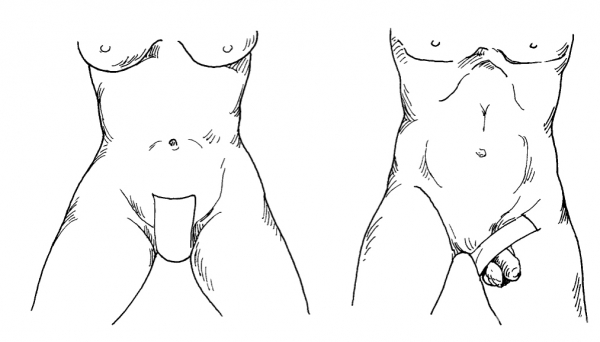 图2-3-21 髋关节手术时遮盖会阴(女)和外生殖器(男)