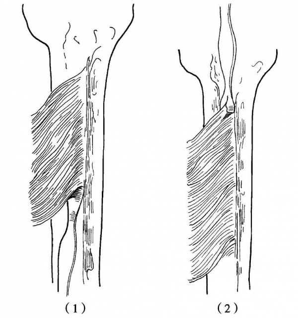 (1)骨膜剥离器向骨间膜或肌纤维与附着的骨干成锐角方向剥离;(2)如向钝角方向剥离,则剥离器易于离开骨干而进入肌纤维或骨间膜纤维之中