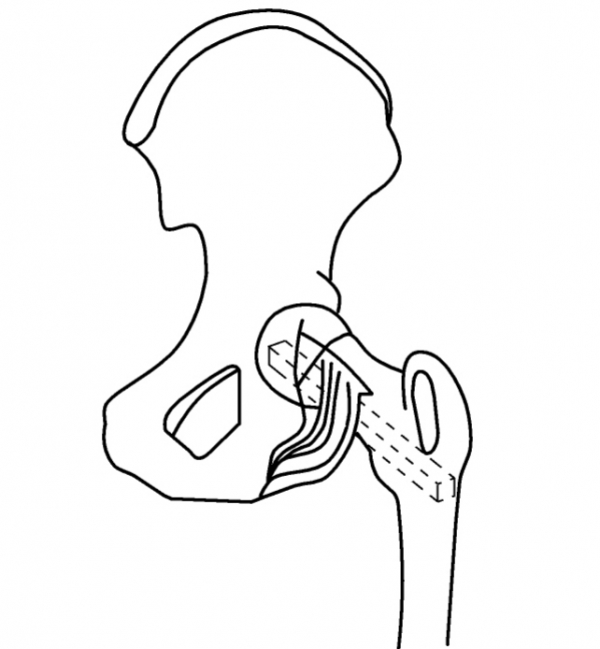 图3-2-2 股方肌骨瓣转位植骨、固定