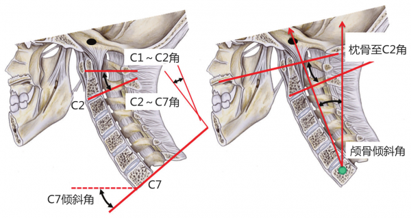 图3-32 主要颅颈和颈椎角度测量方法