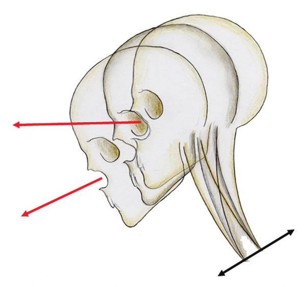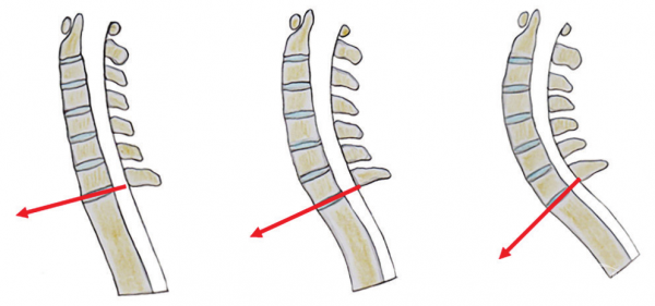 图3-34 颈椎的工作原理就像的调节杆,向上维持平视,向下则取决于根据胸椎后凸角度(C7倾斜角)