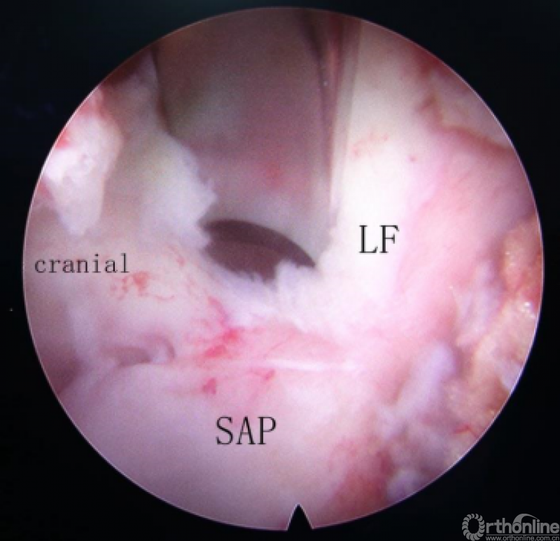 第三步“凿”:凿除部分下关节突,显露上关节突及黄韧带;
