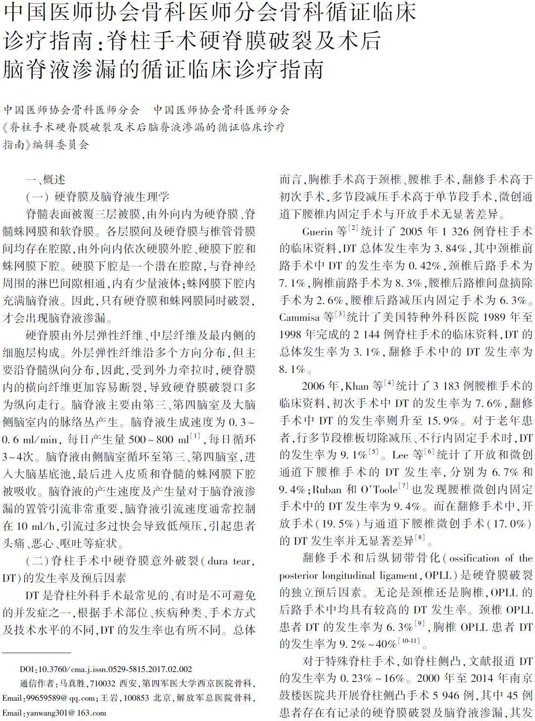 本文及指南所推荐的各项诊治措施,仅作为临床医生处理脑脊液渗漏的参考建议,并不代表处理术中硬脊膜破裂及术后脑脊液渗漏的“金标准”,更不是法律条文,所以不具备法律效力。