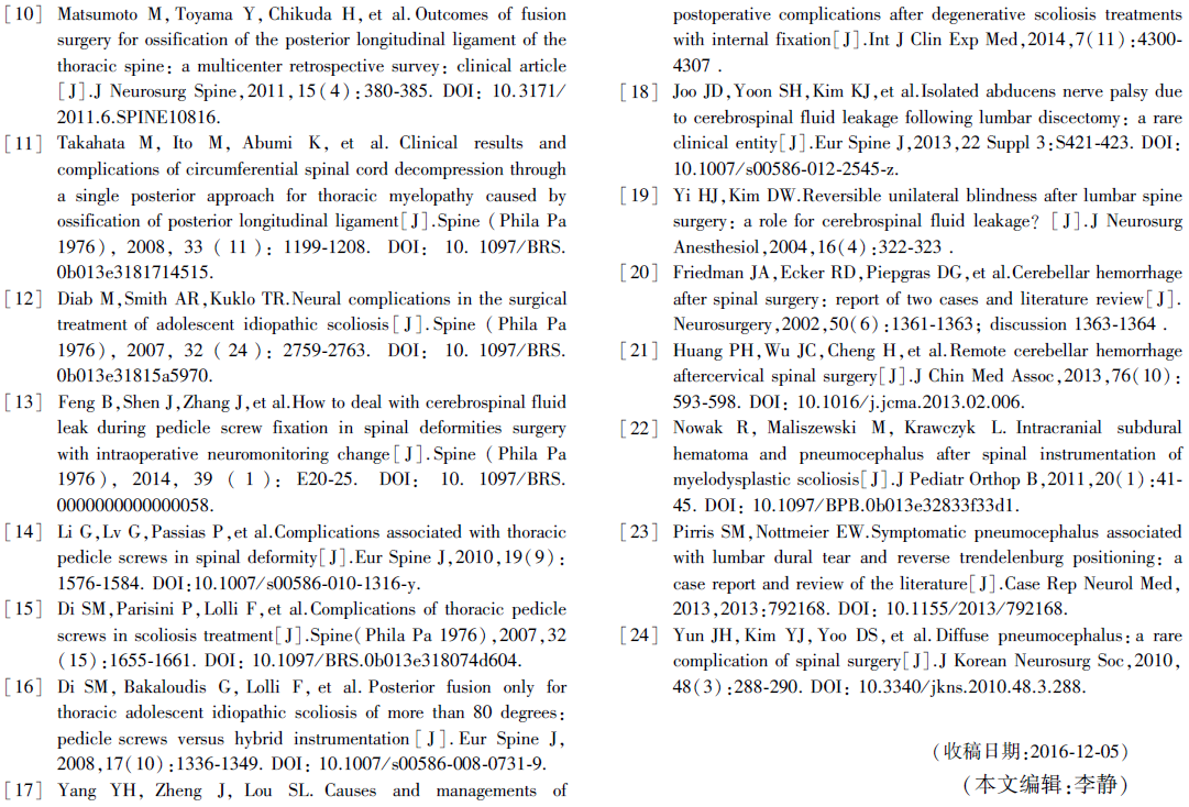 6. 如何处理脊柱侧弯矫形置钉过程的硬脊膜破裂及术后脑脊液漏?