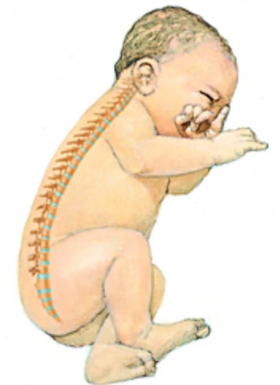 最早出现的前凸是爬行时的颈椎前凸(为了保持水平注视)。站立和行走的出现,实现了腰椎的前凸