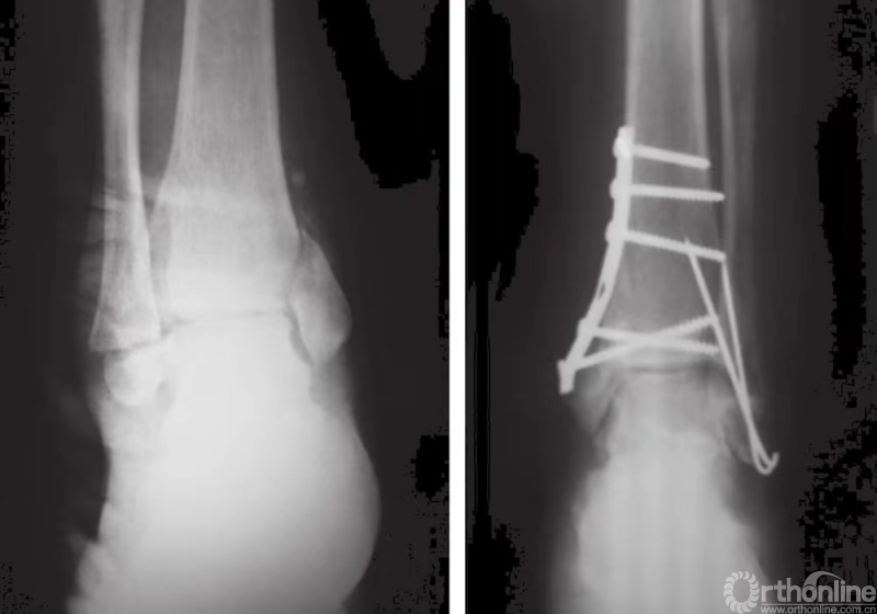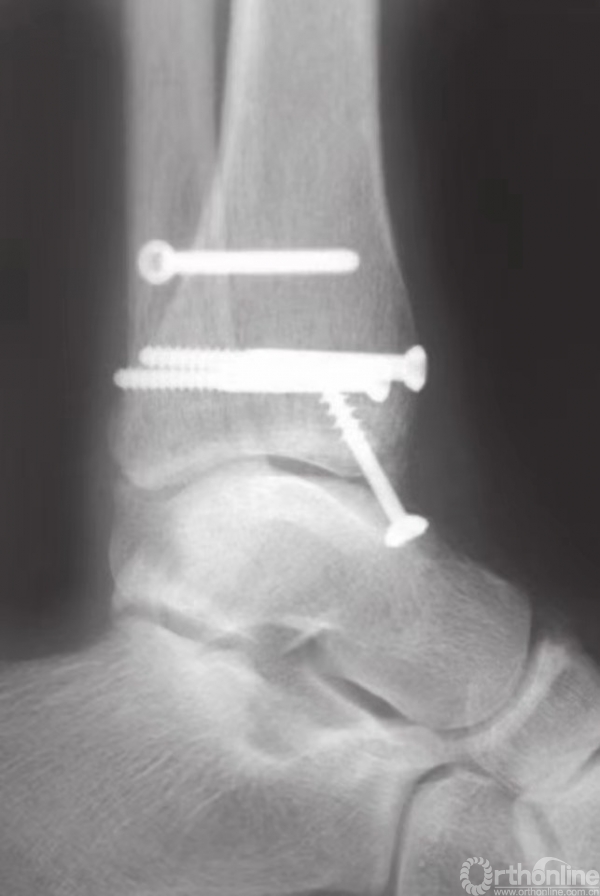 有关下胫腓联合固定的争论更多。已有研究证明了完成解剖复位后的下胫腓联合功能恢复得较好。另外,下胫腓联合在分别经过1年的三皮质固定和四皮质固定后,未发现功能上的差别,但三皮质固定的并发症较少,疗效较好也更快。