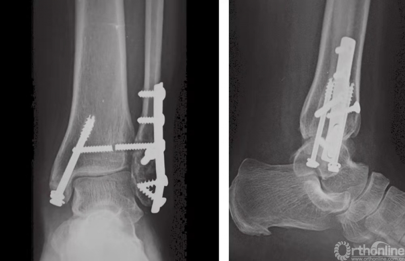 图26 术后16周下胫腓螺钉断裂,但患者无症状