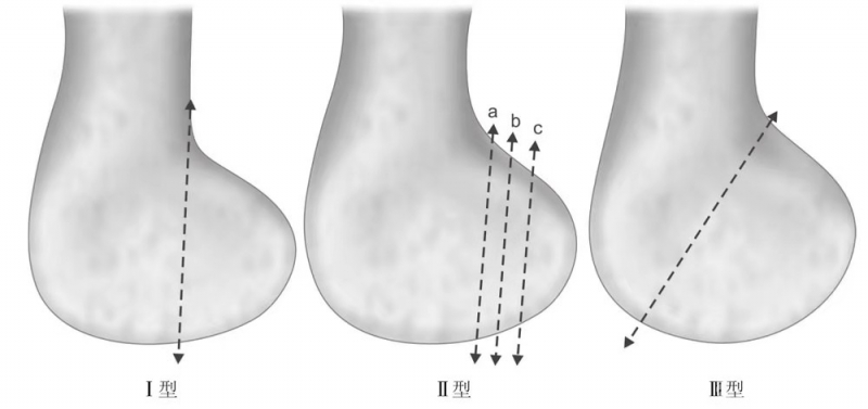 Ⅱ型:骨折线到股骨后侧皮质线的距离,又根据折线到后侧皮质骨的距离多少,分成Ⅱa, Ⅱb和Ⅱc亚型,Ⅱa型离股骨干后侧皮质最近,而Ⅱc离股骨干后侧皮质最远。