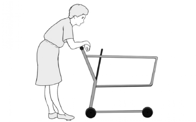 图1 典型的购物推车姿势。已产生症状的椎管狭窄患者靠在购物推车上能走得更远