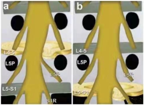 L1、2、3神经根从相应节段椎间盘的下方发出,而L4、5、S1神经根平齐于相应椎间盘发出。所以一般腰间盘稍微有些突出就很容易出现症状。
