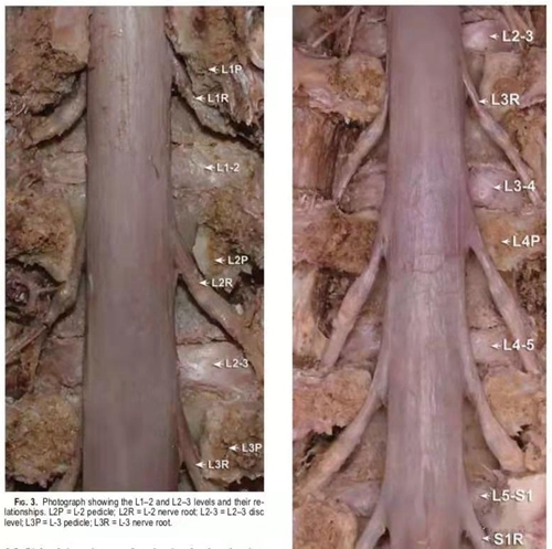 常规显露L4-S1某个间盘,在它上下附近1-2cm的地方就是走行根和出口根,心里务必有数,神经剥离子和椎板咬骨钳拿稳,别乱戳乱咬伤了神经。
