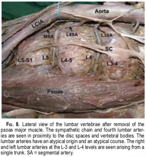 侧方也不要随便乱去,椎体节段动脉SA、交感链SC就在椎旁。打钉子时也要注意,别光盯着不要进入椎管。太靠外戳到椎体旁也很危险。