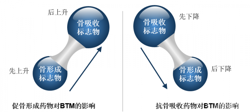 (2)BTMs有预计的变化(例如使用抗吸收药物后出现BTMs下降,使用促骨形成药物出现BTMs上升);