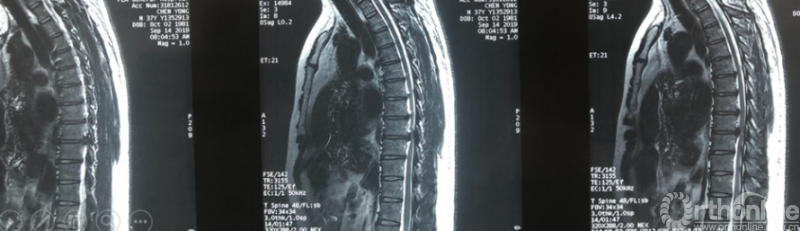 1:多节段胸椎黄韧带骨化症双下肢不全瘫