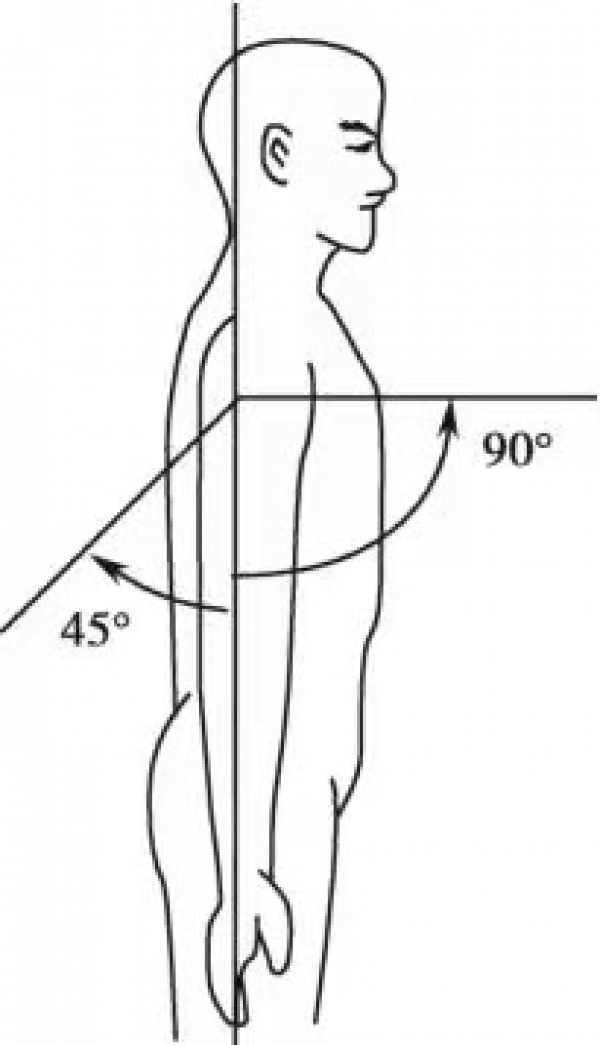 图4-2-2 肩关节前屈后伸活动范围