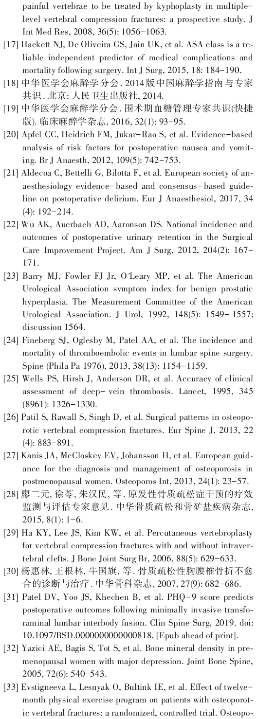 椎体成形术和椎体后凸成形术加速康复实施流程专家共识(上)