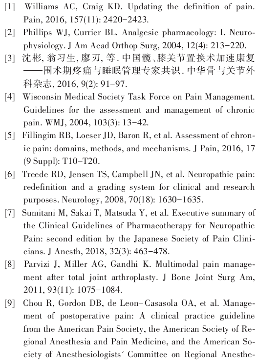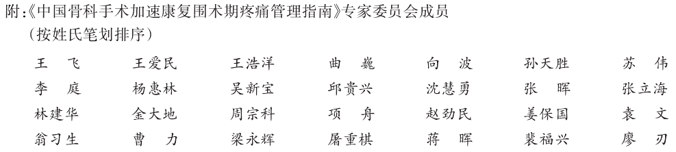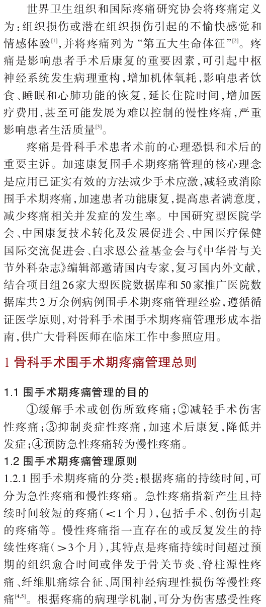 通过查阅文献,中国康复技术转化及发展促进会、中国研究型医院学会、中国医疗保健国际交流促进会和白求恩公益基金会组织专家,基于国家卫生健康委员会公益性行业科研专项《关节置换术安全性与效果评价》项目组数据库大样本数据分析,遵循循证医学原则,经全国专家反复讨论和通讯修改,针对骨科围手术期疼痛管理形成本指南,供广大骨科医师在临床工作中参考。