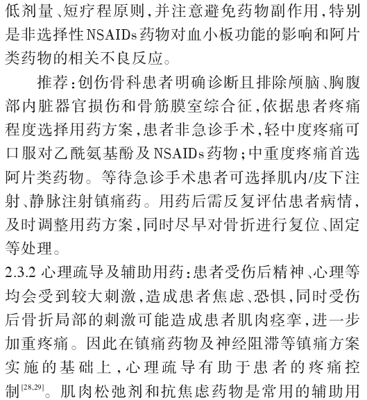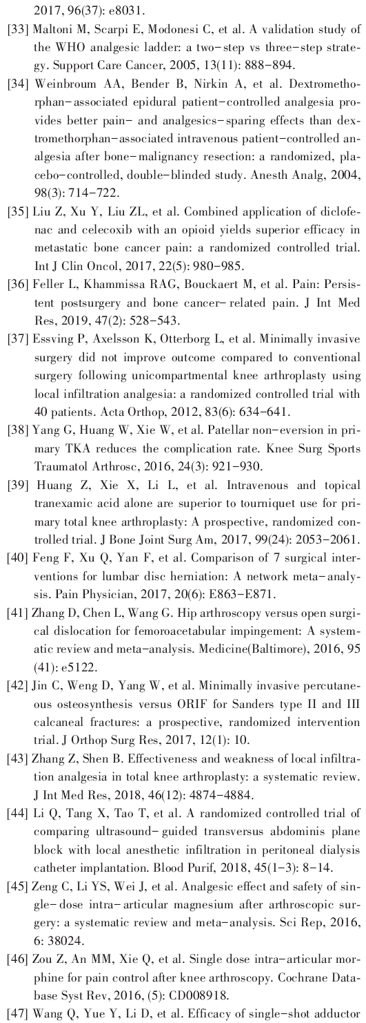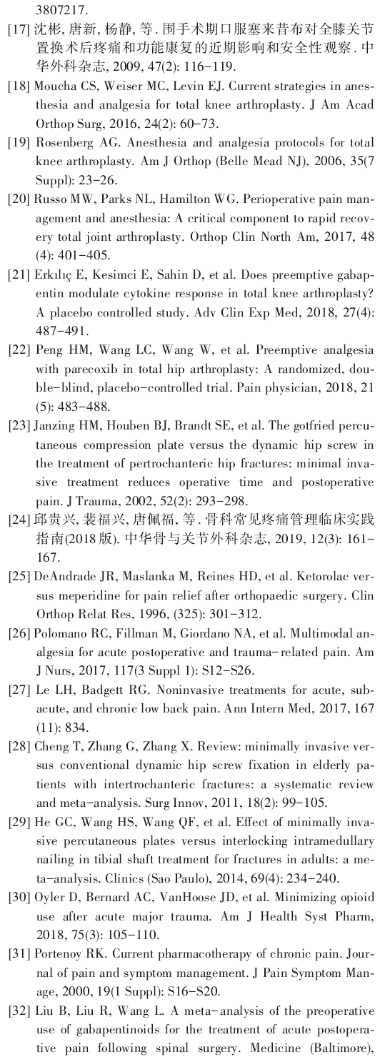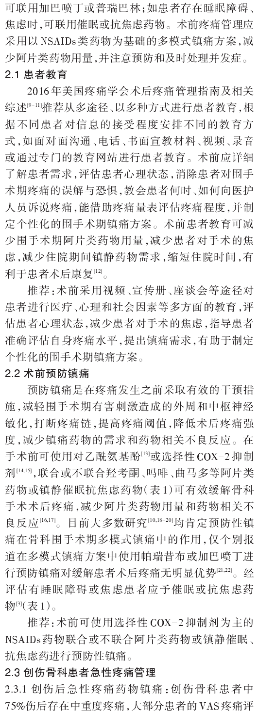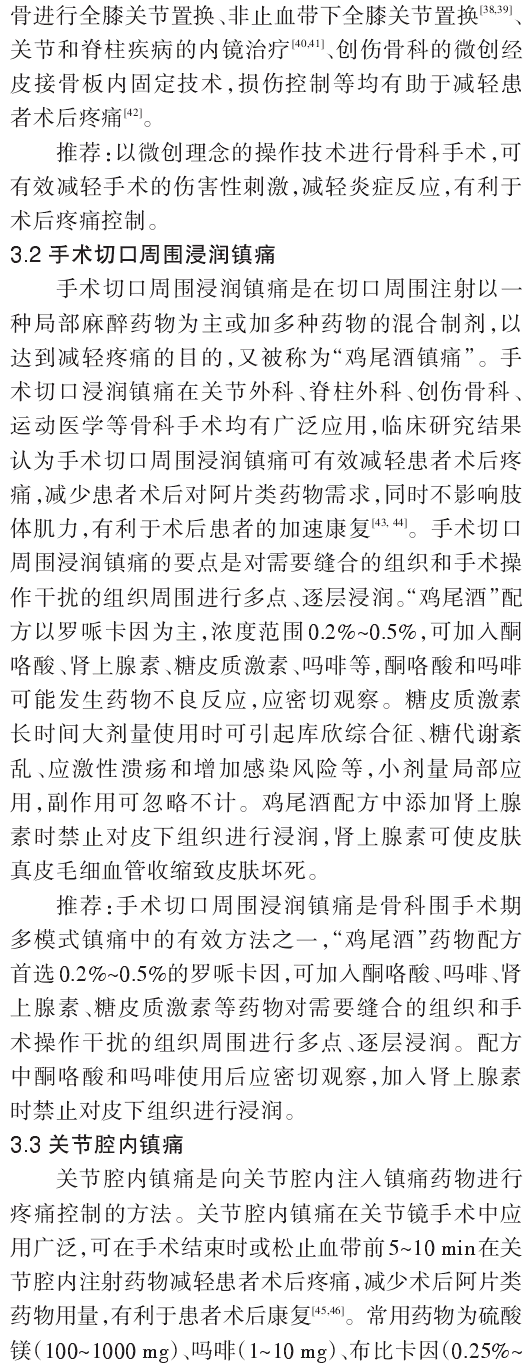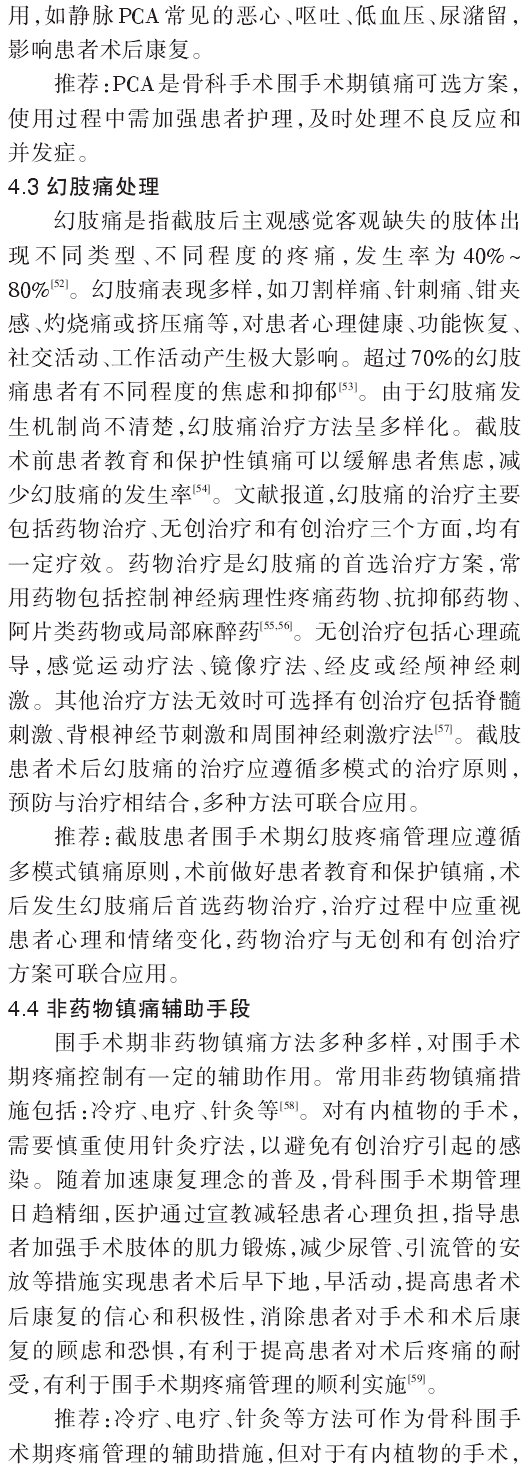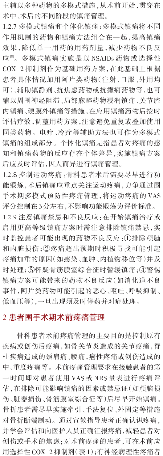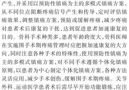 【摘要】骨科手术围手术期疼痛控制直接影响患者术后康复效果与医疗质量。应用已证实有效的方法降低围手术期疼痛可减少疼痛的相关并发症,加速患者术后康复,提高患者满意度。