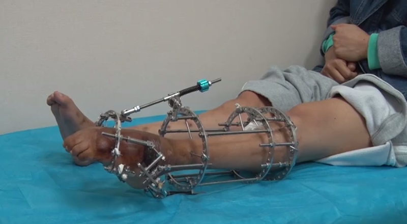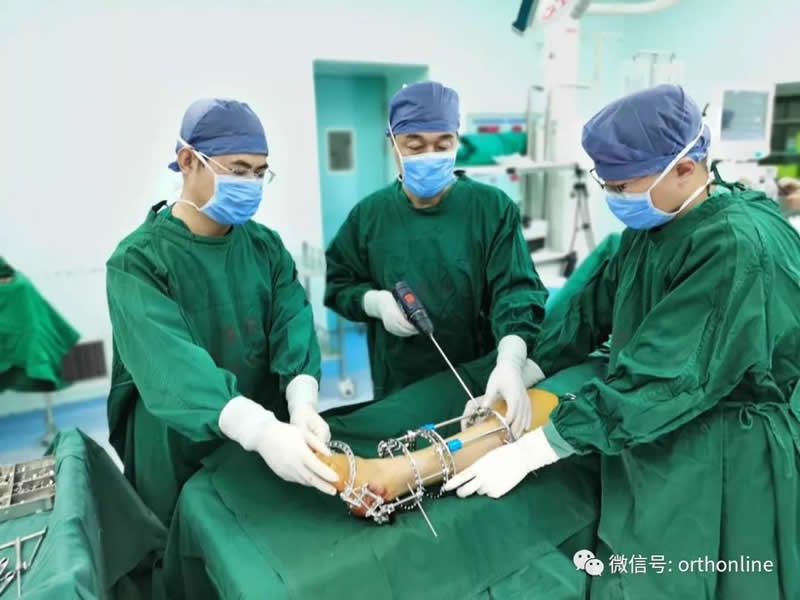 这正是杨华清教授要攻克的难题,经过多年的研究、探索和改进,杨华清教授带领团队创新设计了“微创骨外固定肢体再生控制技术”与“肌骨加速康复治疗技术”。这个技术是在Ilizarov(伊利扎诺夫)肢体矫形术的基础上进行了改进和优化,先通过可调节支具进行外固定,在体外缓慢持续地进行牵拉,使人体组织在应力的刺激下再生。无须穿针、无须开刀,大大减轻了患者的痛苦,治疗成功率也明显提高。