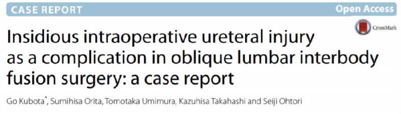 参考文献:Kubota G , Orita S , Umimura T , et al. Insidious intraoperative ureteral injury as a complication in oblique lumbar interbody fusion surgery: a case report[J]. Bmc Research Notes, 2017, 10(1):193.
