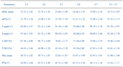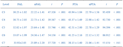 表2 C3~C7节段的PAL/PTA和nPAL/nPTA的比较