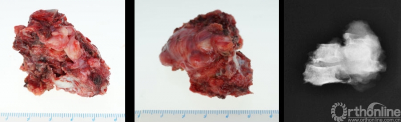 图6,整块切除的C3-C4椎体及肿瘤及标本的X片