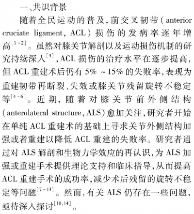 本共识将提供一套临床诊疗方法与路径参考,以便医生在为具有较高失效风险患者进行前交叉韧带重建和翻修手术时选择前外侧结构加强或者重建。