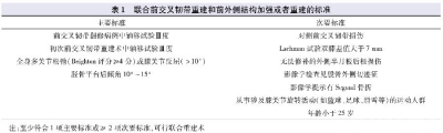 膝关节前交叉韧带重建术有一定的失败风险,对于有高危因素的患者,其失败率更高。随着对膝关节前外侧结构在维持膝关节旋转稳定中作用的发现与认知,在前交叉韧带重建的同时可以进行膝关节前外侧结构的加强或重建以降低伴有高危因素的前交叉韧带损伤患者的治疗失败率。因此,专家组在循证医学的基础上,对膝关节前外侧结构的定义、术前评估、手术适应证、手术技术和策略、术后康复及并发症预防与处理原则等方面进行了文献总结和讨论,制定了膝关节前外侧结构加强及重建专家共识规范。
