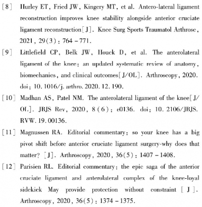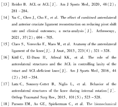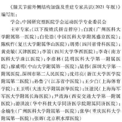 膝关节前外侧结构加强及重建专家共识 (2021 年版)