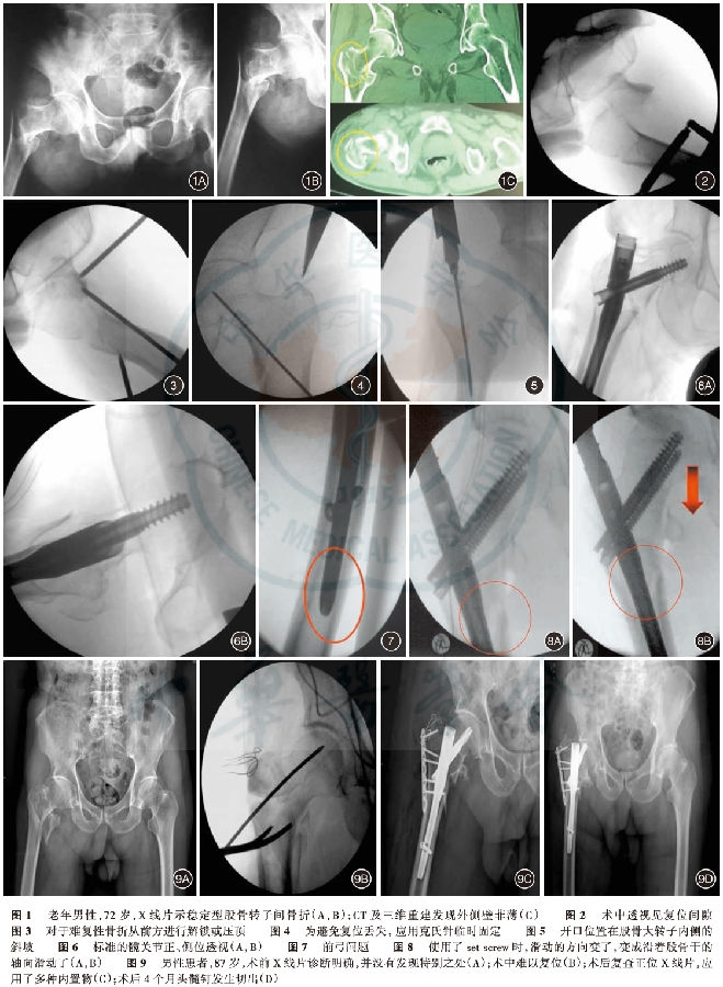 术前评估的错误也体现于对影像资料的阅读不足,比如存在隐性骨折线没有被发现,术中出现移位;股骨转子部外侧壁存有纵裂骨折线,但是摄X线片有遮挡和旋转没有被发现;最重要的还是没有充分理解骨折分类,没有读懂骨折的内容造成判断失误,其中外侧壁骨折或菲薄以及忽视潜在不稳定因素是失误的关键。