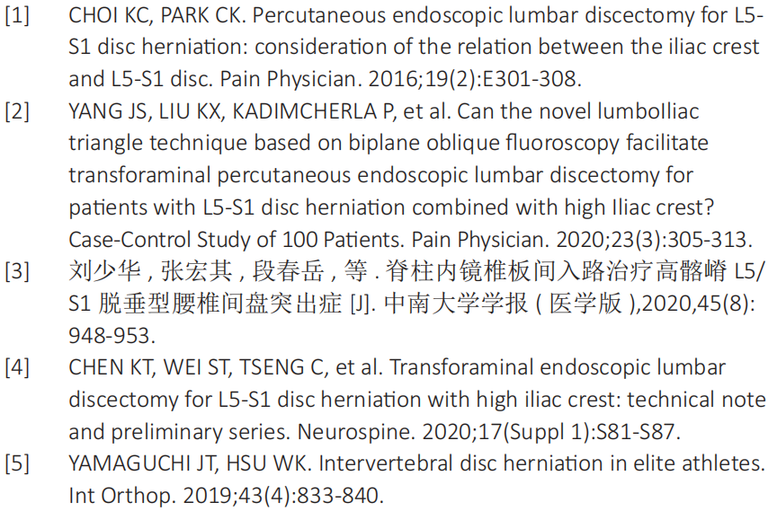 经皮椎间孔镜下椎间盘切除治疗伴有高髂嵴的L5/S1椎间盘突出症